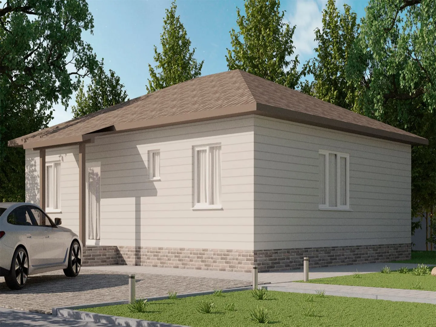 **Дом СД‑125 – гармония традиций и современного комфорта** Великолепный загородный дом с классическим фасадом, созданный для того, чтобы каждый день дарил уют и спокойствие. Одна надземная этажа легко адаптируется под потребности любой семьи: просторные комнаты, светлые зоны отдыха и удобные санузлы позволяют обустроить уютный дом на один этаж, без лишних лестниц и спешки. Благодаря круглогодичному планированию, в доме всегда тепло и комфортно – от зимних морозов до летних дней, а SIP‑панели на внешних стенах обеспечивают энергоэффективность и долговечность. Четырёхскатная вальмовая крыша дополняет классический облик, а просторный чердачий отсек открывает перспективы для дополнительного пространства – будь то кладовка, мастерская или домашний офис. **Комфортная жизнь без компромиссов** Дом СД‑125 предлагает все, что нужно для современной жизни, без лишних балконов и веранд: простая, но элегантная архитектура подчёркивает утонченность и лаконичность интерьера. Отсутствие пристроенного гаража не является ограничением – к дому подходит открытая автостоянка, а возможность легко расширить пространство под автомобиль – ваша свобода выбора. Тераса с видом на живописную природу приглашает к общению с природой, подчеркивая единство дома и окружающего пейзажа. Просторная терраса и аккуратный дизайн позволяют с легкостью создать собственный уголок уюта, где каждое утро будет начинаться с рассвета, а вечер – завершается звёздным небом. **Идеальное сочетание стиля, практичности и ценности** Дом СД‑125 воплощает в себе классическую эстетику, экономию энергии и простоту в обслуживании, делая его идеальной инвестицией для тех, кто ценит гармонию и комфорт. Запланируйте просмотр уже сегодня и убедитесь, что этот дом стоит за вашими мечтами о спокойной, гармоничной загородной жизни.