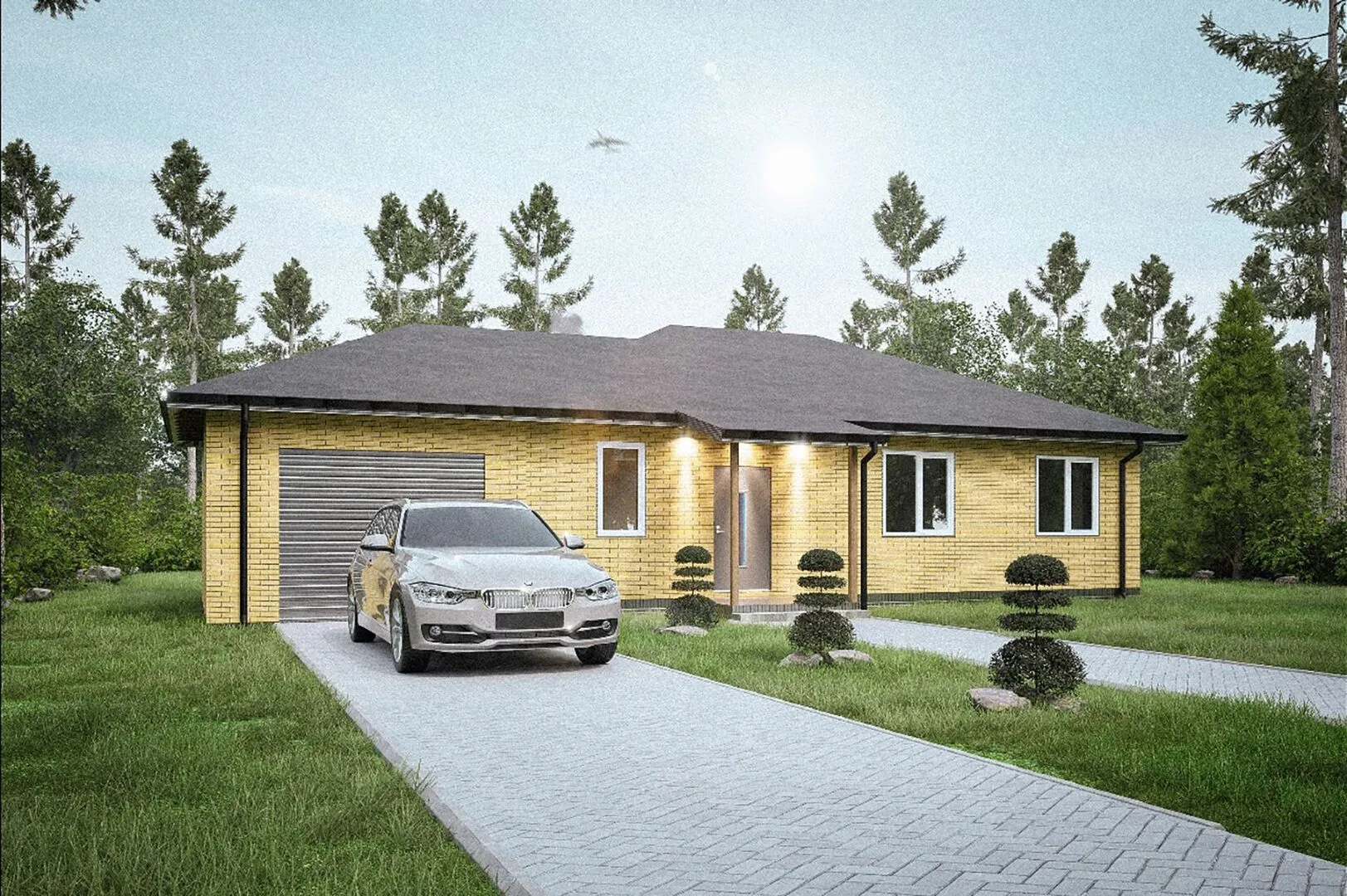 При первом взгляде на «Семейный» хочется поверить, что здесь всё время царит уют и теплая атмосфера. Дом построен в классическом стиле с вниманием к деталям: широкие пороги, строгие кутовые окна и ровные, чистые линии фасада создают ощущение гармонии и спокойствия. Круглогодичное проживание обеспечивается теплым камином и хорошо изолированными газобетонными стенами, а большие окна наполняют интерьер естественным светом, создавая ощущение присутствия на природе. Годовой круглый вид на живописный сад и просторное пейзажное пространство превращают этот дом в настоящий уголок семейного счастья. Пристроенный гараж и крытая автостоянка позволяют удобно и безопасно хранить транспорт. Несмотря на отсутствие балконов и веранд, просторные комнаты и четвёрскатная (вальмовая) кровля делают «Семейный» идеальным местом для тихого отдыха и праздничных встреч. Это дом, где каждая деталь продумана так, чтобы подарить вам и вашей семье комфорт, безопасность и тёплые семейные ценности.
