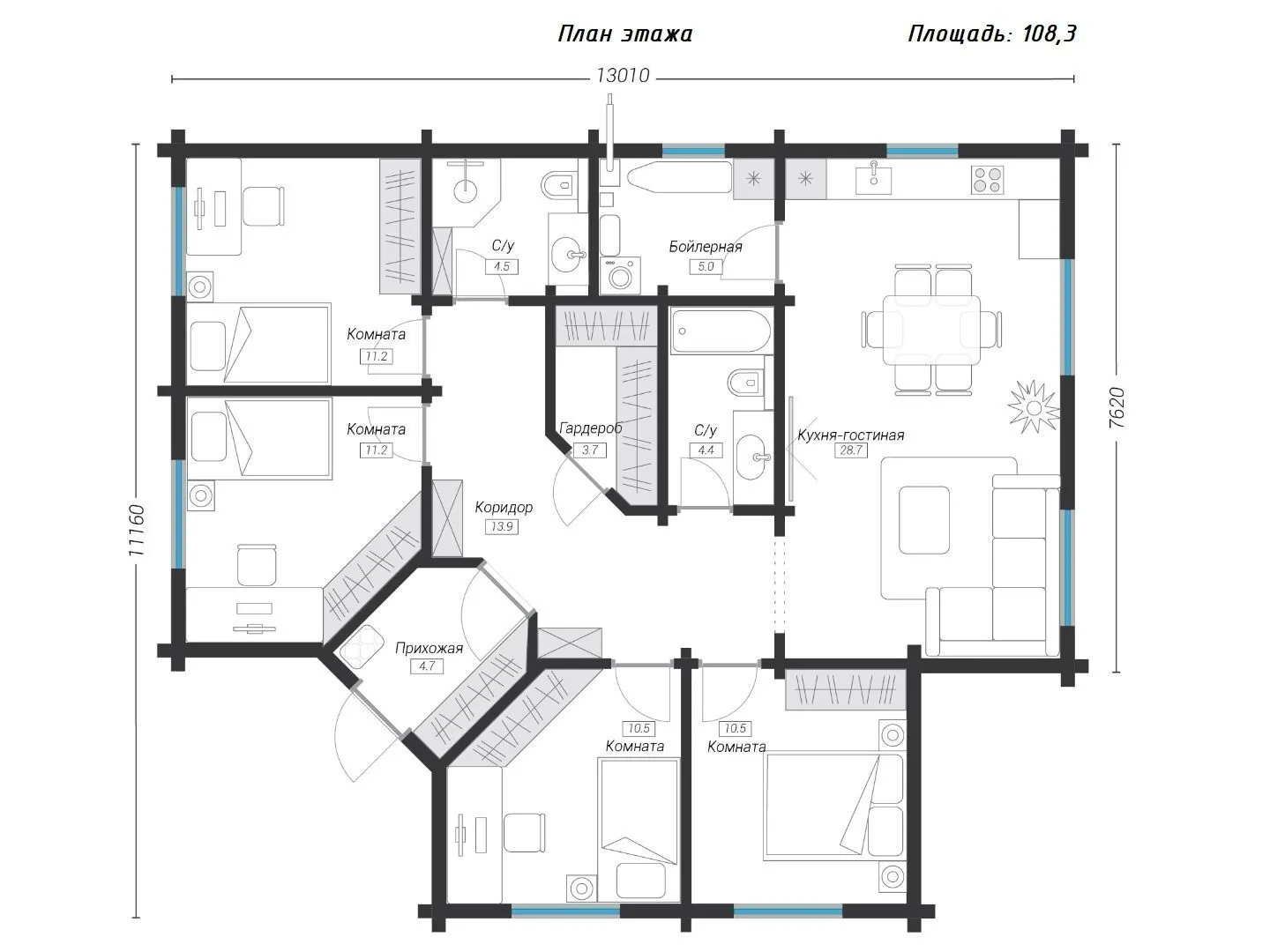В сердце тихой деревни, где шум веток и шёпот реки становятся музыкой, ждет ваш уютный уголок – Загородный дом Ш‑88. Это одноэтажное пространство, созданное в традиционном русском стиле, сочетает в себе простоту и функциональность, идеально подходящее для круглогодичного проживания. Внешние стены, выполненные из клеёных брусов, придают дому тёплый, почти древний облик, а четырёхскатная (вальмовая) крыша дополняет его классический вид, защищая от ветра и дождя. Внутри каждый сантиметр продуман: просторные комнаты, открытые полы, которые создают ощущение лёгкости и свободы, а просторное чердачное помещение превращается в идеальное место для хранения вещей, творчества или уютного уголка с книжной полкой. Отсутствие балконов и веранд делает интерьер более сдержанным и сосредоточенным на внутреннем тепле, а отсутствие прицепленного гаража позволит вам использовать земельный участок так, как вам удобно – возможно, для огорода, сада или небольшого хозяйственного комплекса. Дом Ш‑88 – это ваш личный оазис, где традиции встречаются с комфортом, а природа становится частью дома.