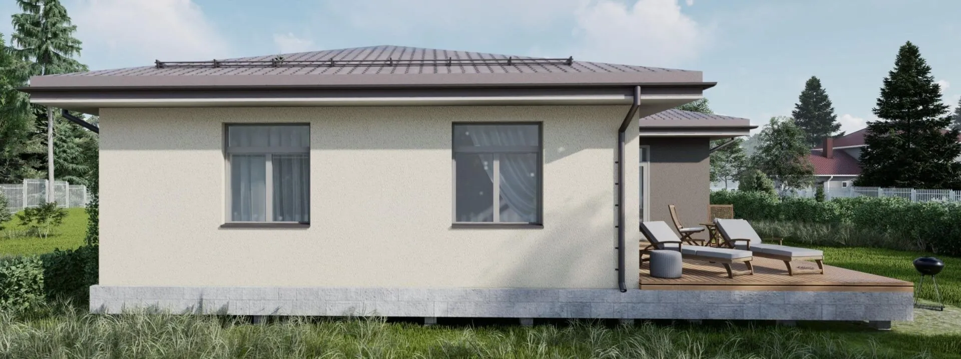 Одноэтажный дом с тремя спальнями и кухней-гостиной