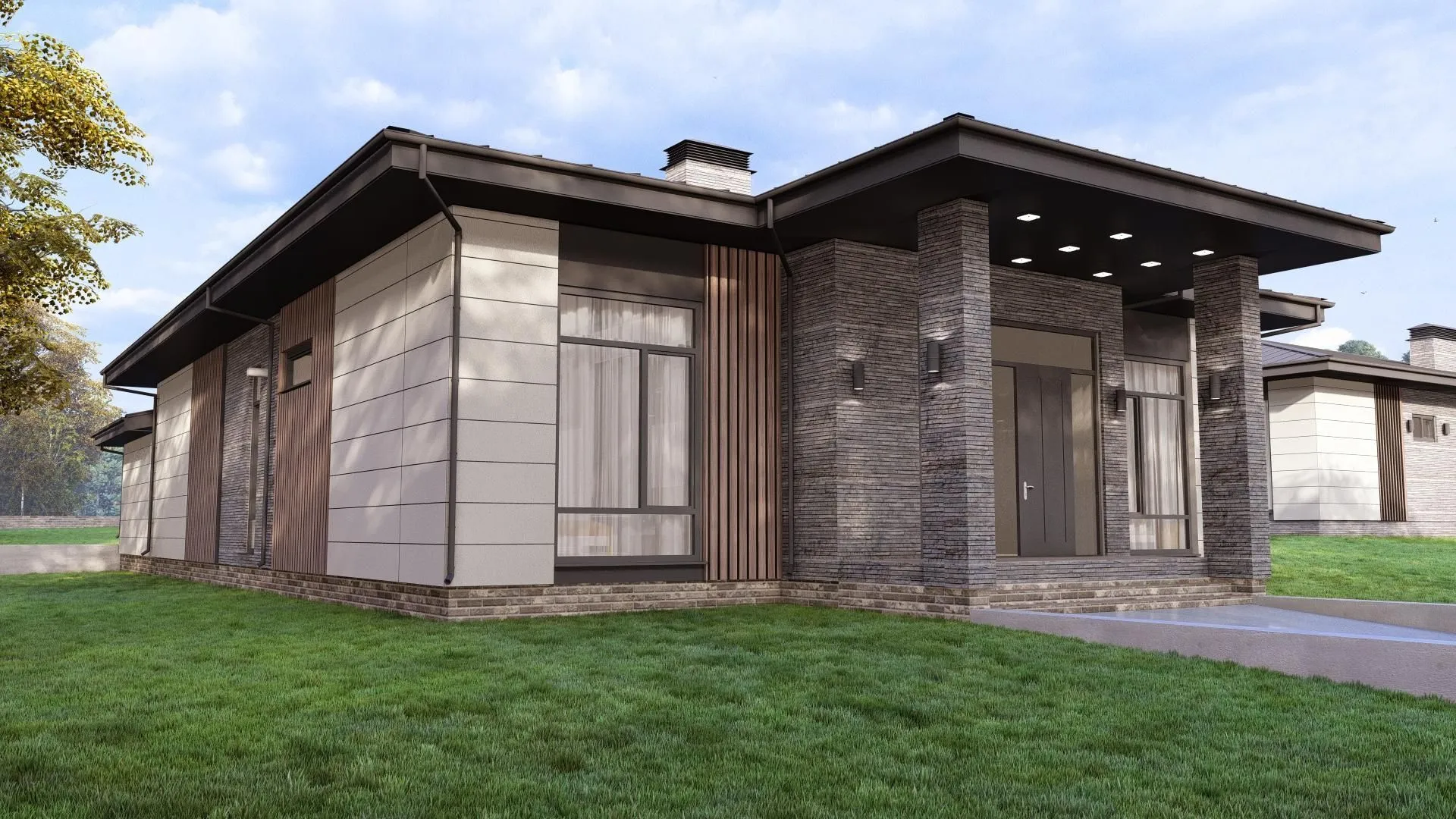 Вдали от суеты мегаполиса, в живописной зелёной чаще, расположен загородный дом **ВС‑101** – истинный оазис современного комфорта и уюта. Экономически эффективный и в то же время элегантный, он сочетает в себе минималистичный хай‑тек, вдохновлённый городским ландшафтом, с теплом и уютом традиционной деревенской жизни. Одноместная планировка и высокие потолки создают просторное ощущение, а просторная терраса с панорамными окнами открывает виды на окружающий лес и лёгкий летний бриз. Вечерние часы здесь превращаются в волшебное событие: мягкий свет из наружных светильников придаёт дому романтическую атмосферу, а открытые пространства приглашают вас провести незабываемые вечера с близкими, наслаждаясь спокойствием природы. Дом построен из керамического блока – надёжного, огнеупорного и энергоэффективного материала, который делает его идеальным для круглогодичного проживания. Внутри встречает гармония светлых тонов, просторных комнат и современных технологий: от автоматизированной системы отопления и вентиляции до интеллектуальных развлечений. Керамический блочный фасад, покрытый лаком защитного глянца, подчёркивает современный характер здания, одновременно придавая ему теплоту. Крыша с четырёхскатным вальмовым рисунком не только защищает от непогоды, но и добавляет дому характерный архитектурный штрих, который виден со всех сторон. Несмотря на свою простоту, ВС‑101 предоставляет великолепную функциональность. Чердачное помещение, превращённое в уютный рабочий уголок или небольшую игровую комнату, позволяет максимально использовать каждый метр. Наличие просторной террасы и открытых оконных проёмов обеспечивает прекрасную циркуляцию воздуха и естественное освещение во всех уголках дома. Здесь, где современность встречается с природой, каждый момент становится событием, а ваш дом – местом, где царит гармония между дизайном и жизнью. Это идеальный выбор для тех, кто ценит комфорт, стиль и близость к природе без лишних компромиссов.