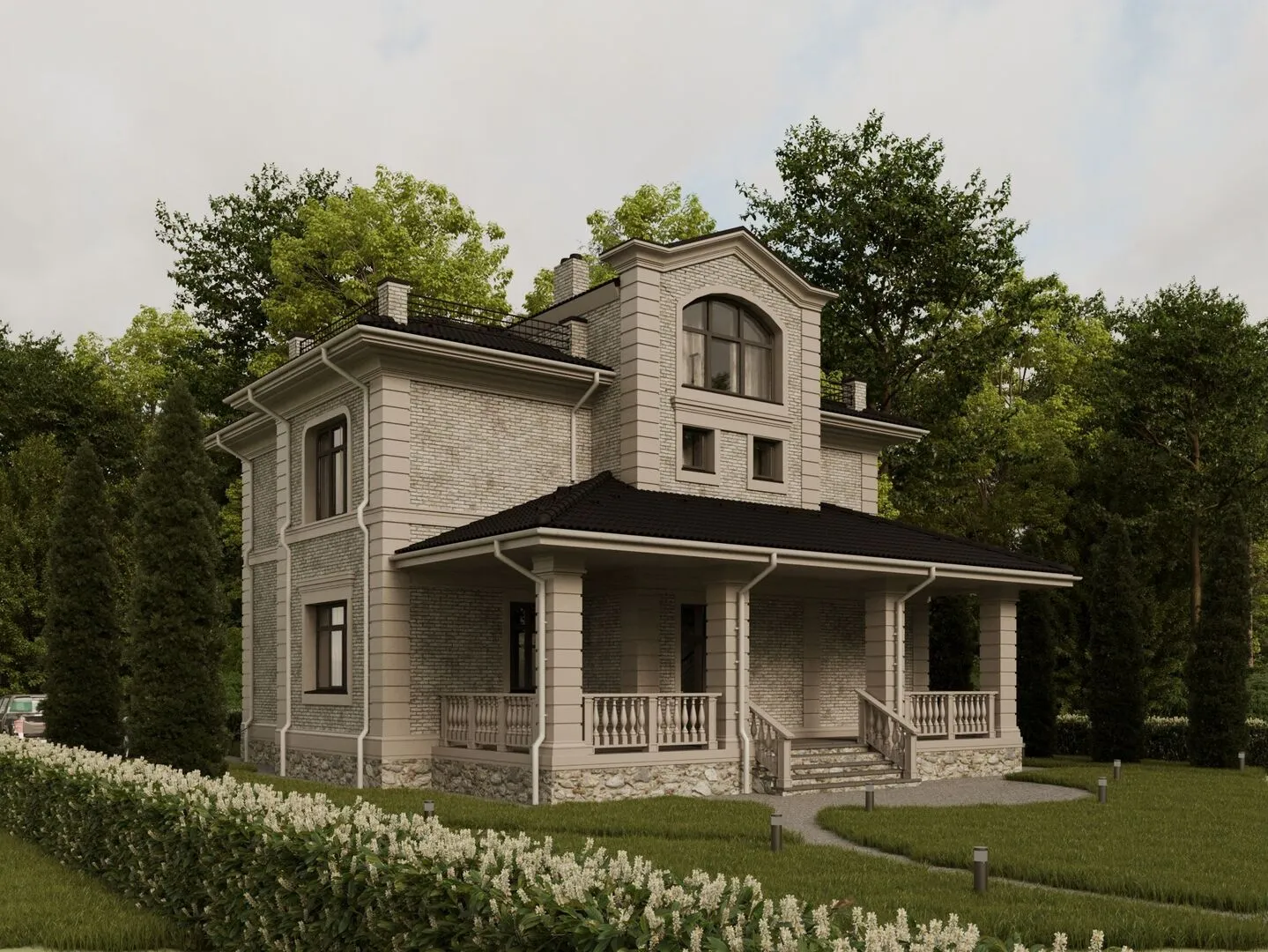 Загородный особняк «Гринфилд» – это уютный уголок благородства, где классика встречается с современностью. Три надземных этажа, открытые к небесам, предлагают изысканную архитектуру в духе классического стиля: строгие линии, величественные фасады и обильное использование световых элементов создают атмосферу величественного уюта. В круглый год «Гринфилд» превращается в настоящий дом – тёплый и светлый даже в самые прохладные дни, благодаря продуманной теплоизоляции и материалам высокого качества. Ключевой особенностью дома является просторная веранда, которая становится живой частью интерьера: здесь можно наслаждаться живой природой, устраивать семейные ужины и смотреть на закат за пределами окна. Гостиные, спальни и рабочие зоны изобилуют естественным светом, а чердачное помещение предоставляет гибкое пространство для хранения или творческого уголка. Бетонные газобетонные блоки обеспечивают надежную защищённость от колебаний температуры и повышенную акустику, а комбинированная крыша сочетает в себе традиционный шарм и современный функционал. Этот дом – идеальное сочетание стиля и комфорта, где каждый уголок вдохновляет на мечты. В «Гринфилде» найдётся место как для тихого семейного уединения, так и для ярких встреч друзей. Откройте для себя возможность жить в окружении природы, сохраняя при этом все прелести домашнего уюта.