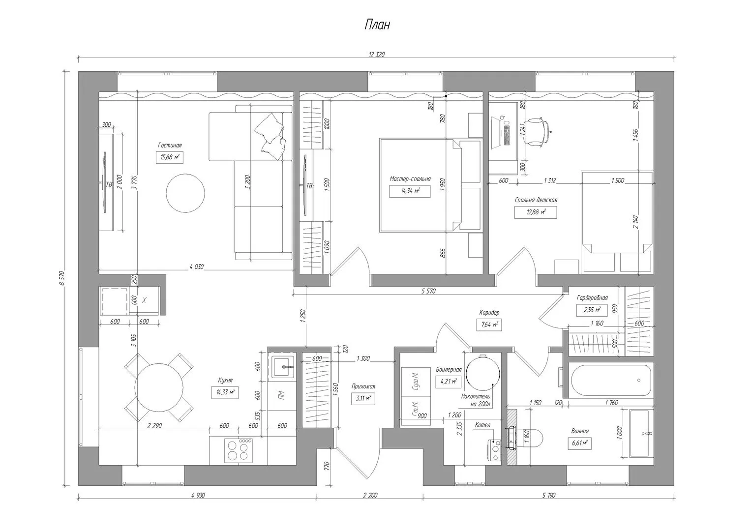 Совмещенная кухня-гостиная
