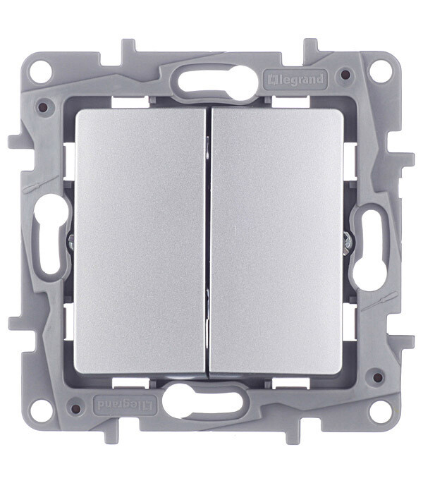 Переключатель Legrand Etika двухклавишный встраиваемый алюминий (672412)