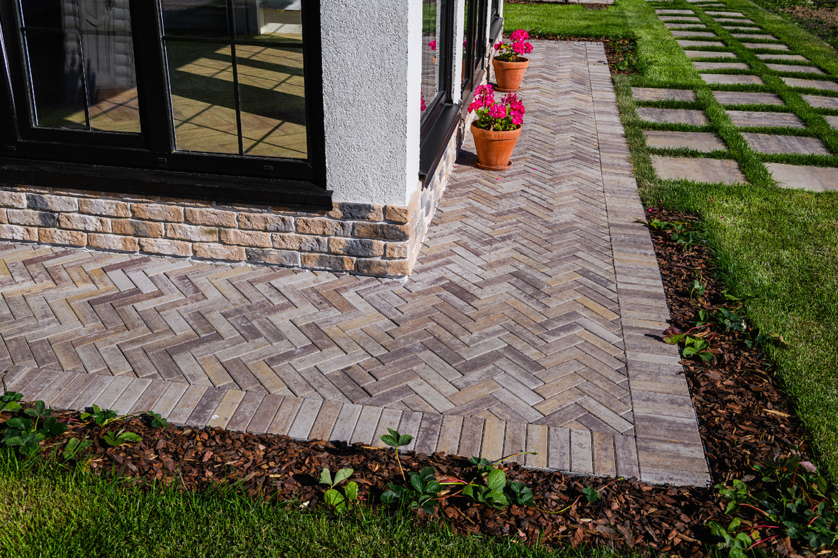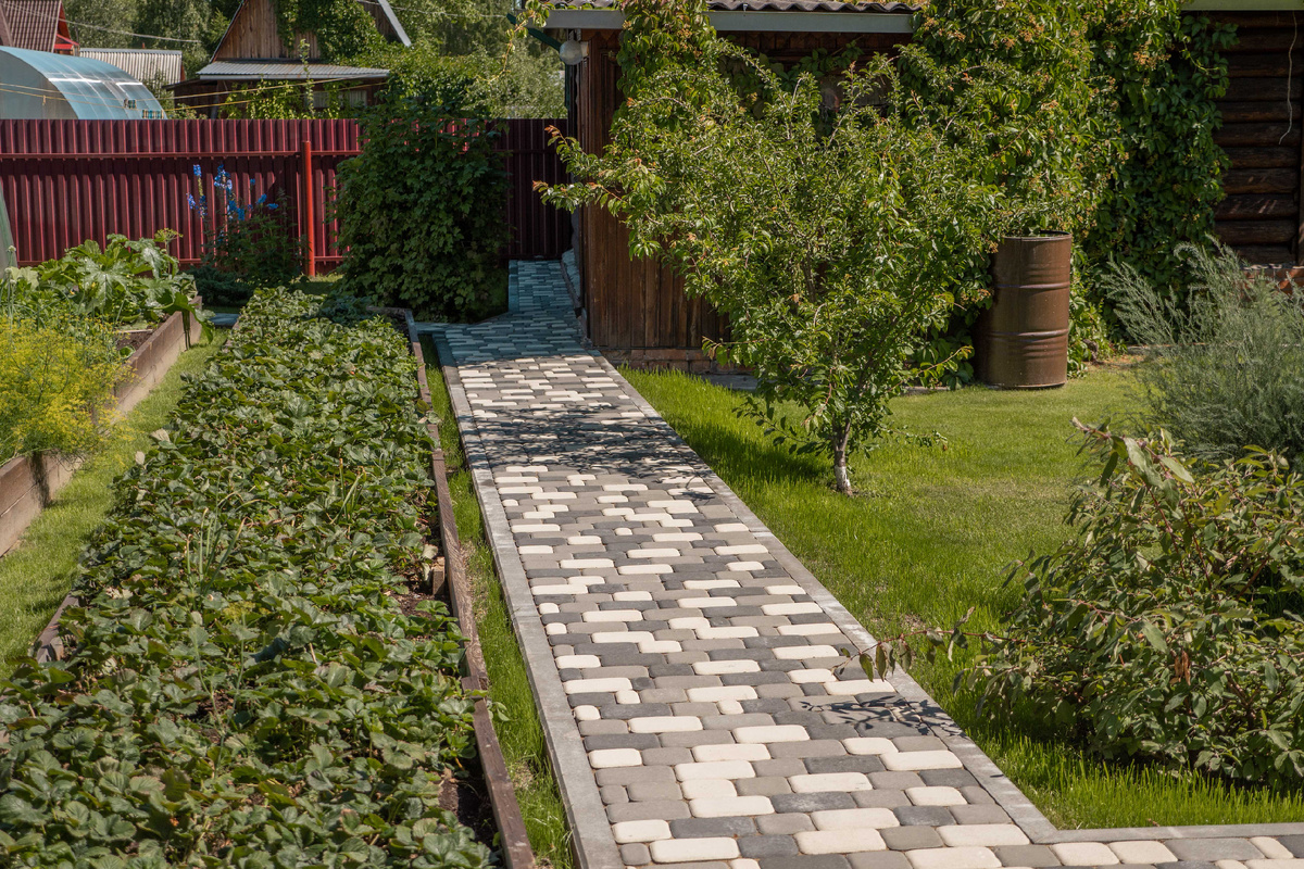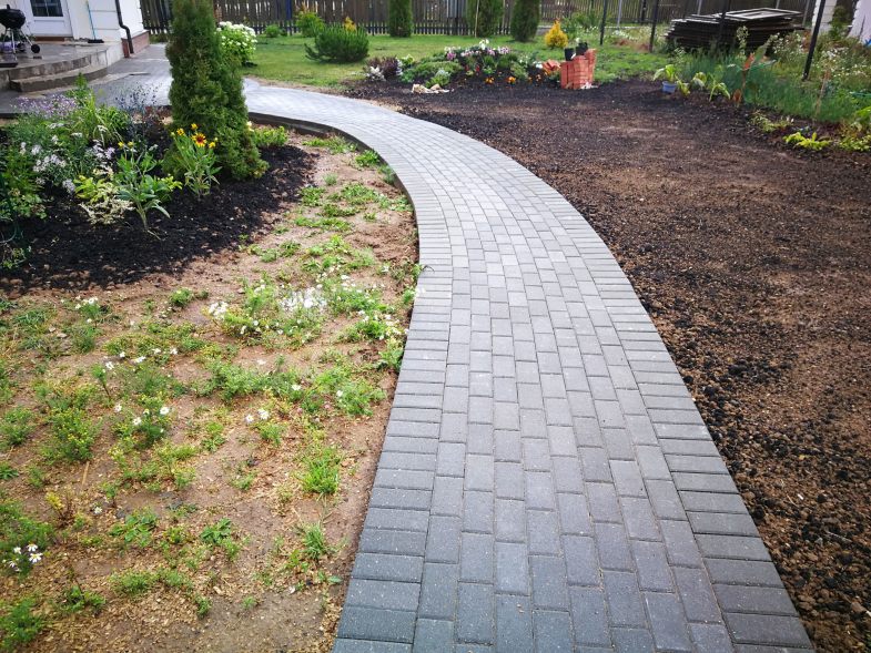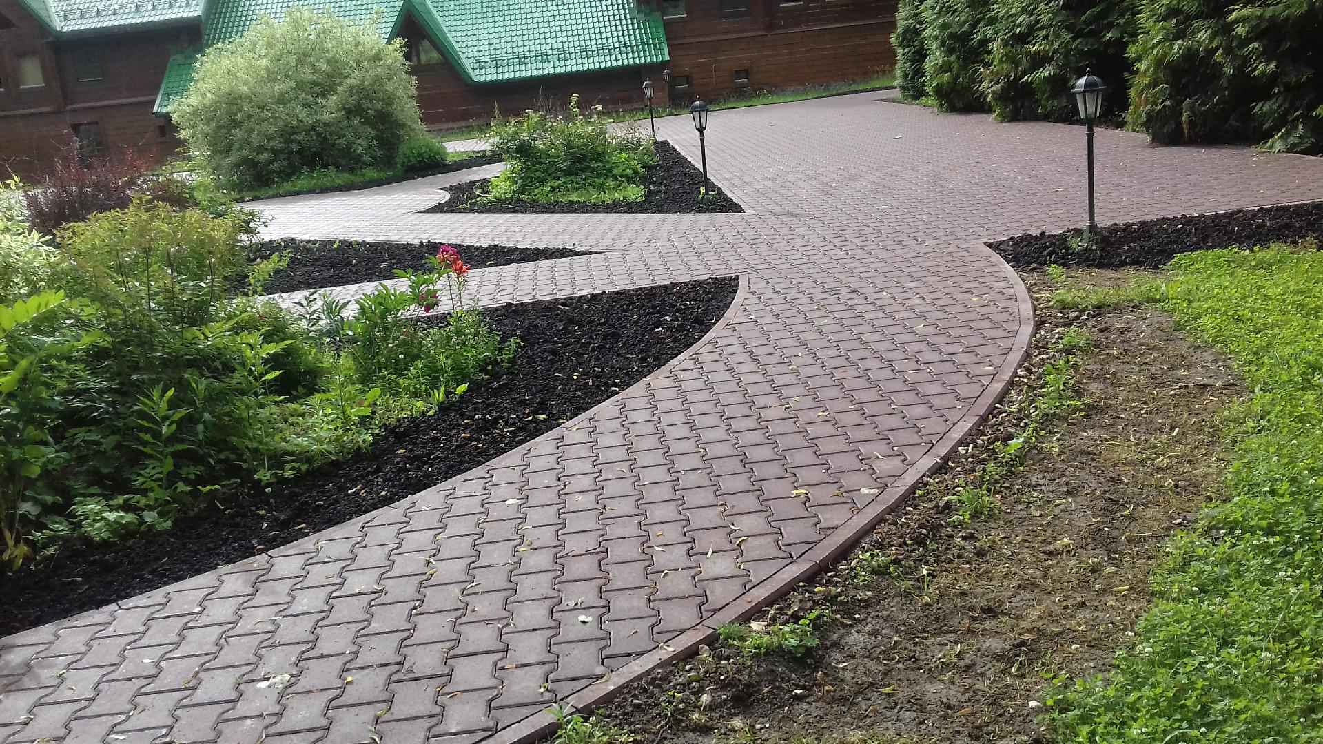 В качестве облицовки применяются проверенные уличные решения: вибропрессованная тротуарная плитка с точной геометрией для высоких нагрузок, выразительный архитектурный бетон и вибролитые элементы для фактурных композиций, морозостойкий уличный керамогранит для современного минимализма, а также полимерпесчаные плиты и бордюры в случаях, где важны лёгкость элементов, устойчивость к влаге и химическим реагентам. Цвет, формат, модульность, фактура и коэффициент скольжения согласуются на этапе проектирования, что позволяет сочетать функциональность с эстетикой и собирать узоры разной сложности: классические линейные схемы, «ёлочку», модульные сетки, веерные радиусы и плавные криволинейные траектории с аккуратной подрезкой. Все кромки фиксируются бортовым камнем или скрытыми ограничителями, благодаря чему дорожка сохраняет форму, не расползается, а газонные примыкания остаются чистыми и аккуратными.
