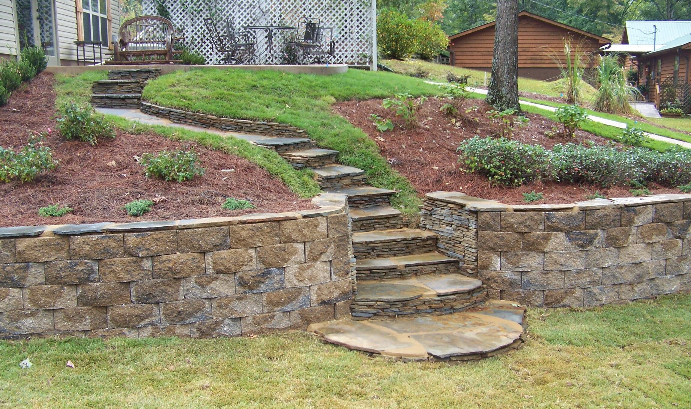 Ландшафтная интеграция — важная часть услуги. Проектируем террасы, подпорные ступени, лестничные марши и пандусы, устраиваем подпорные полки для посадок, закладываем газо- и почвоукрепляющие георешетки на откосах. При необходимости монтируем ограждения, поручни и барьерные элементы, закладные под освещение и навигацию, а в общественных пространствах — сиденья и подпорные стенки-малые архитектурные формы. Уделяем внимание безопасным проходам, антискользящим покрытиям и доступности для маломобильных пользователей.