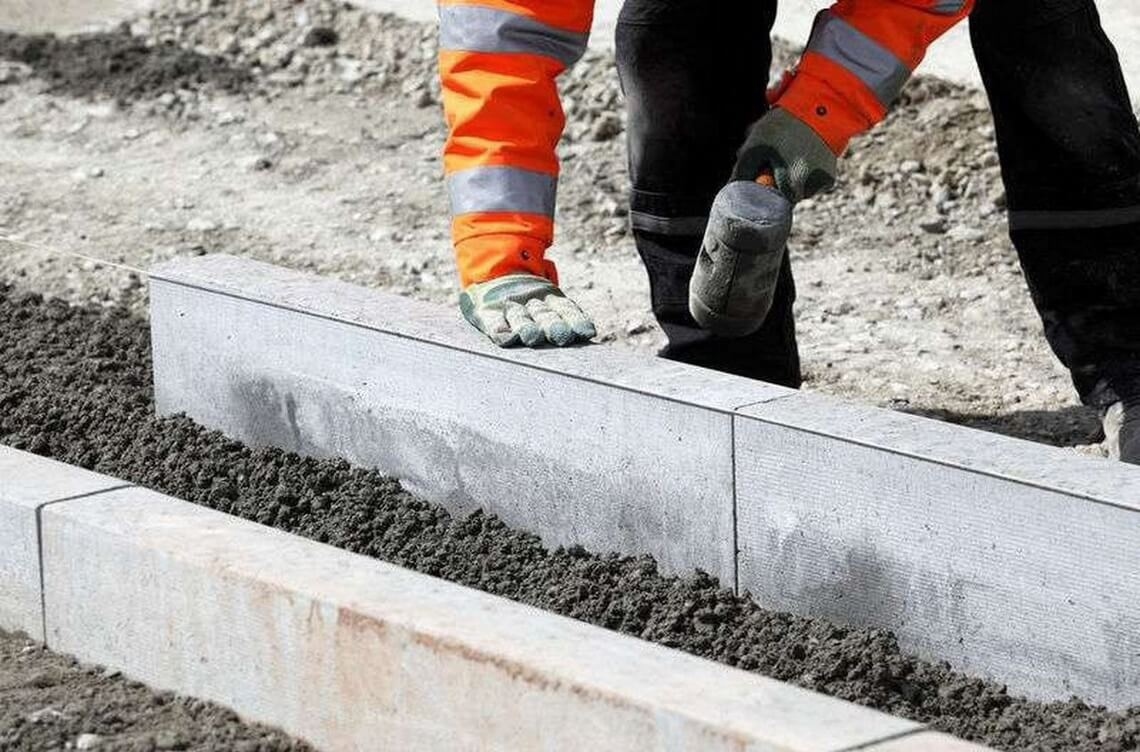 Монтаж выполняется с точным контролем геометрии. Каждый элемент устанавливается на раствор по заданной отметке, выверяется по уровню и по шнуру, торцы подрезаются или применяются фасонные камни для аккуратных поворотов и сопряжений. Швы формируются с заданной шириной и аккуратно заполняются раствором, чтобы исключить расшатывание и проникновение воды в тело конструкции. С тыльной стороны выполняется бетонный замок или армированная заанкеренная подсыпка, которая воспринимает боковое давление со стороны мощения и исключает выдавливание бордюра при боковых нагрузках и пучении грунта.
