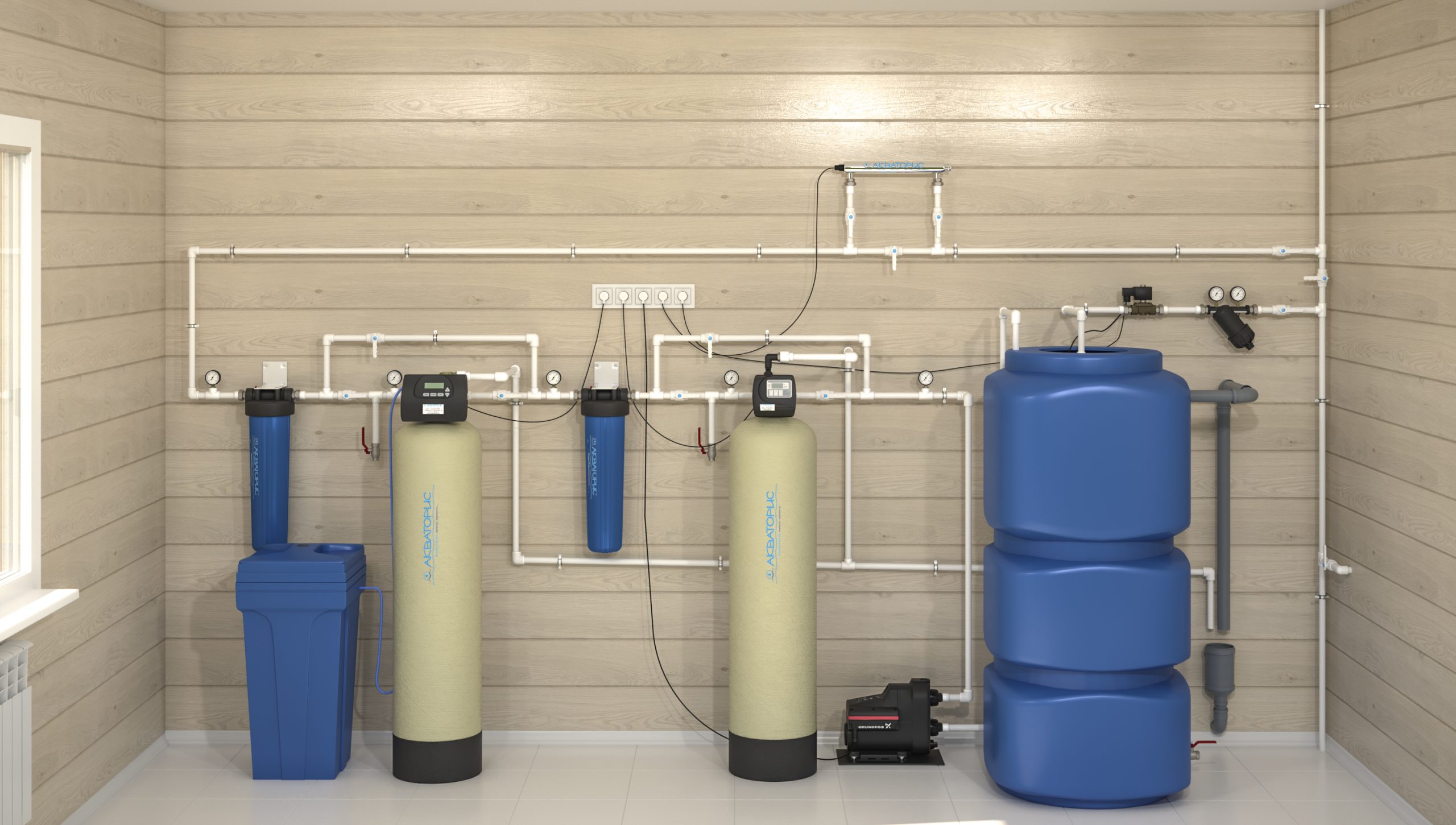 — Проектирование системы. Подбираем технологию и конфигурацию под реальные потребления и пиковые разборы: магистральная ступень на вводе, узлы подготовки для кухни и питья, защита техники и сантехники, решения для полива и бойлерной. Рассчитываем производительность, ресурс загрузок, частоту регенераций, объём солевого бака и гидравлические потери.