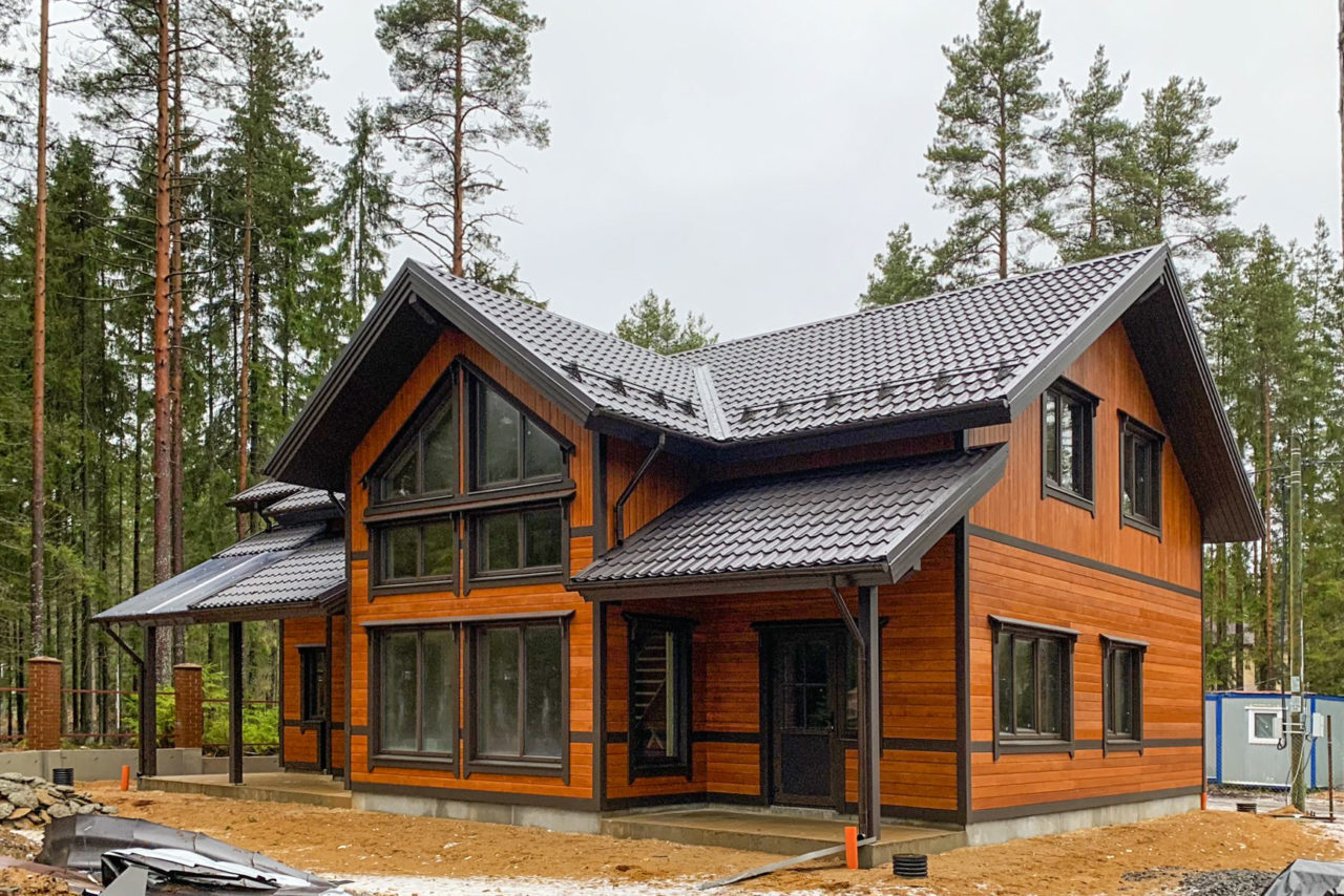 — Кровля и водоотвод. Монтируем стропильные системы с расчётом снеговых нагрузок, используем мембраны, контробрешётку, капельники, организованный водосток. Покрытия — металлочерепица, фальц, мягкая кровля, композит под архитектурную задачу.