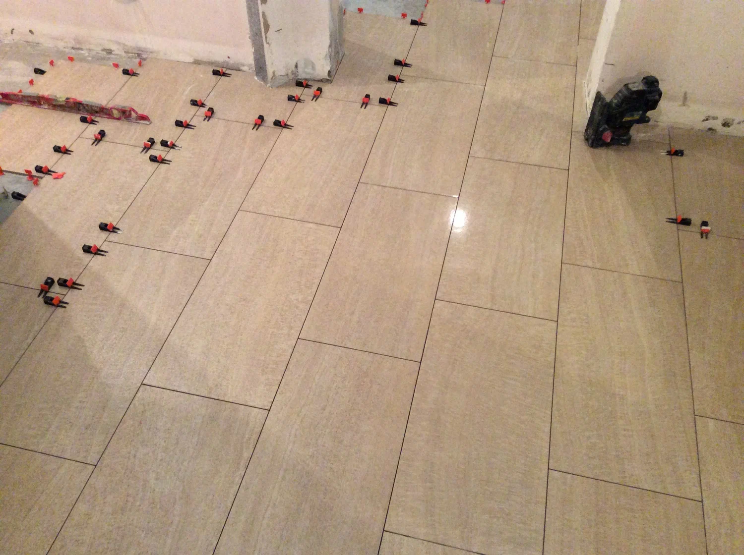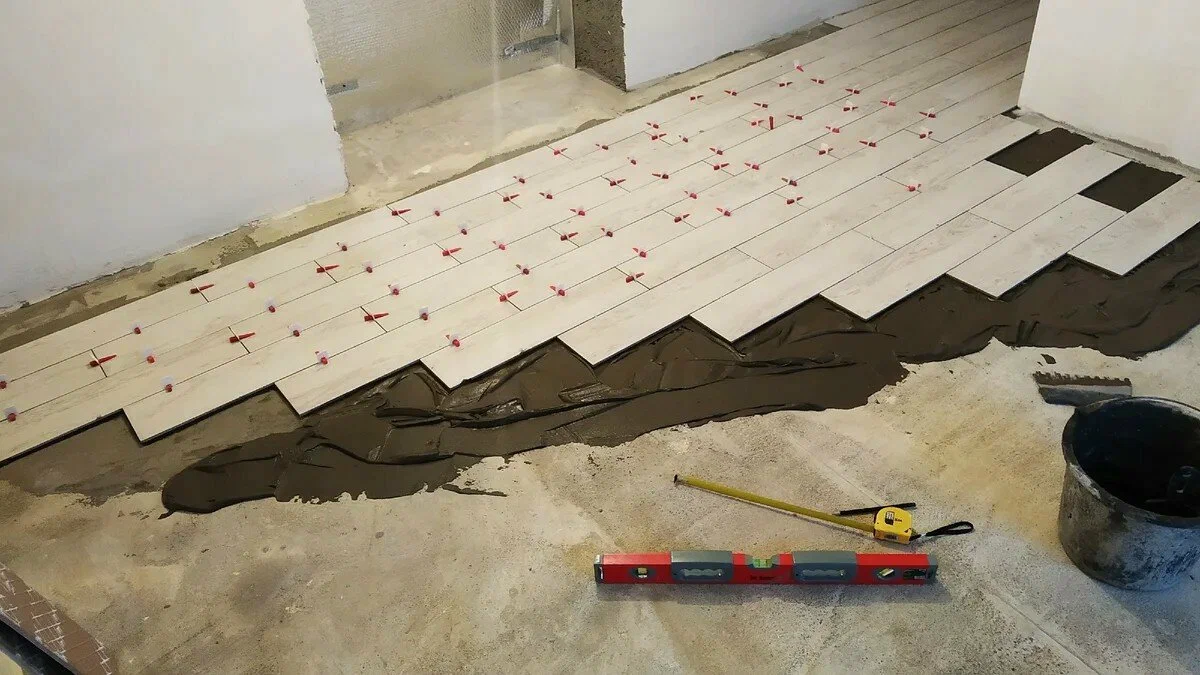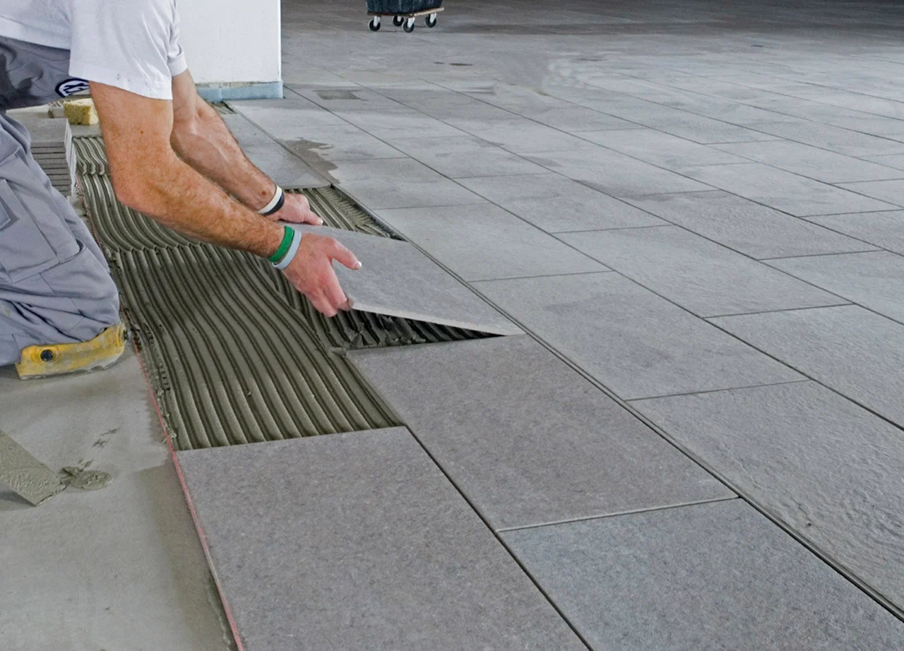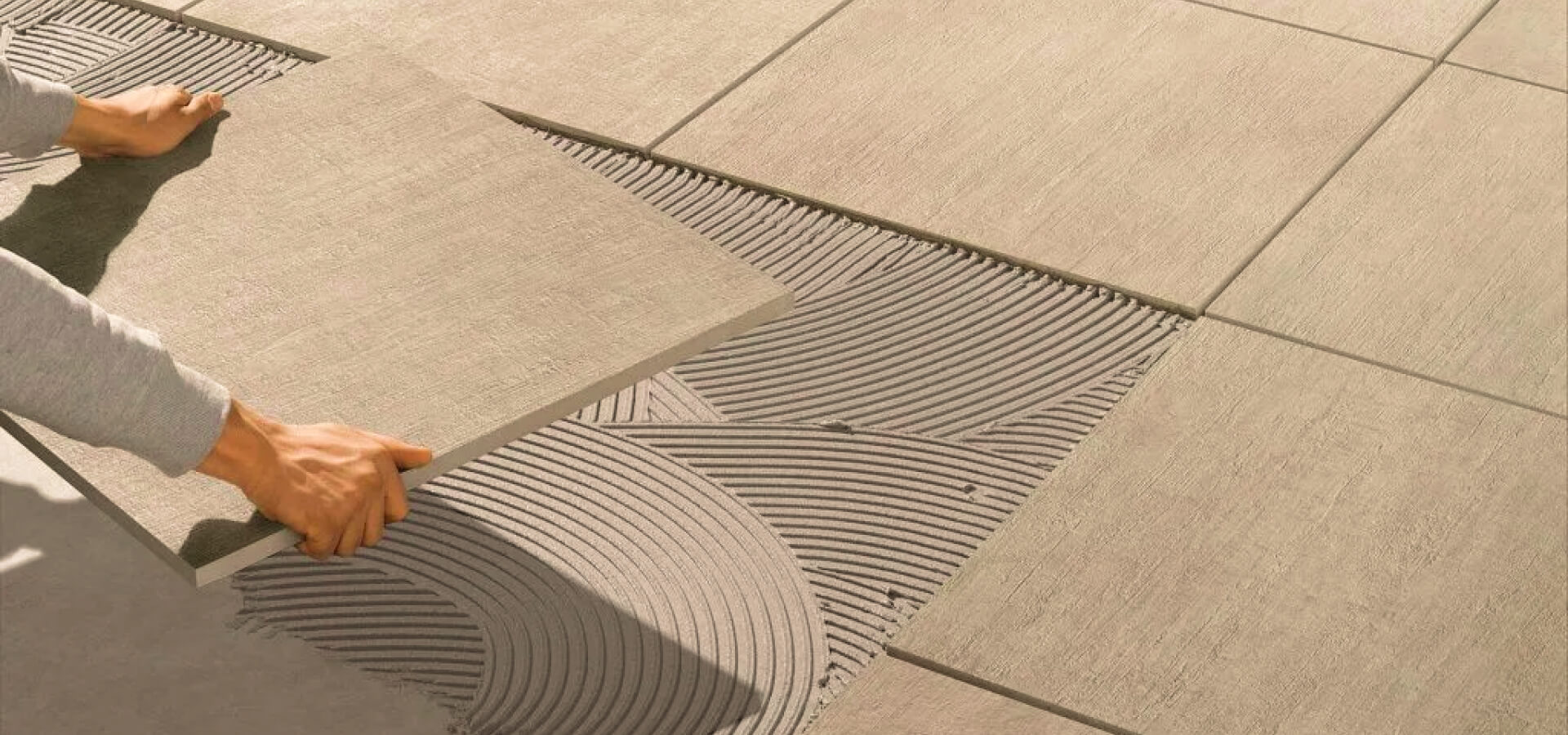 Для укладки используем профессиональные клеевые составы класса не ниже C2 с корректировочным временем и деформативностью, подбираем их под формат плитки, основание и условия эксплуатации, включая теплые полы и наружные участки. Контроль плоскости выполняем лазерными приборами, а для крупных форматов применяем системы выравнивания (СВП), вакуумные присоски и длинные правила. Каждый элемент осаживаем без пустот, тщательно контролируем заполнение клеем, чтобы покрытие работало тихо и ровно.