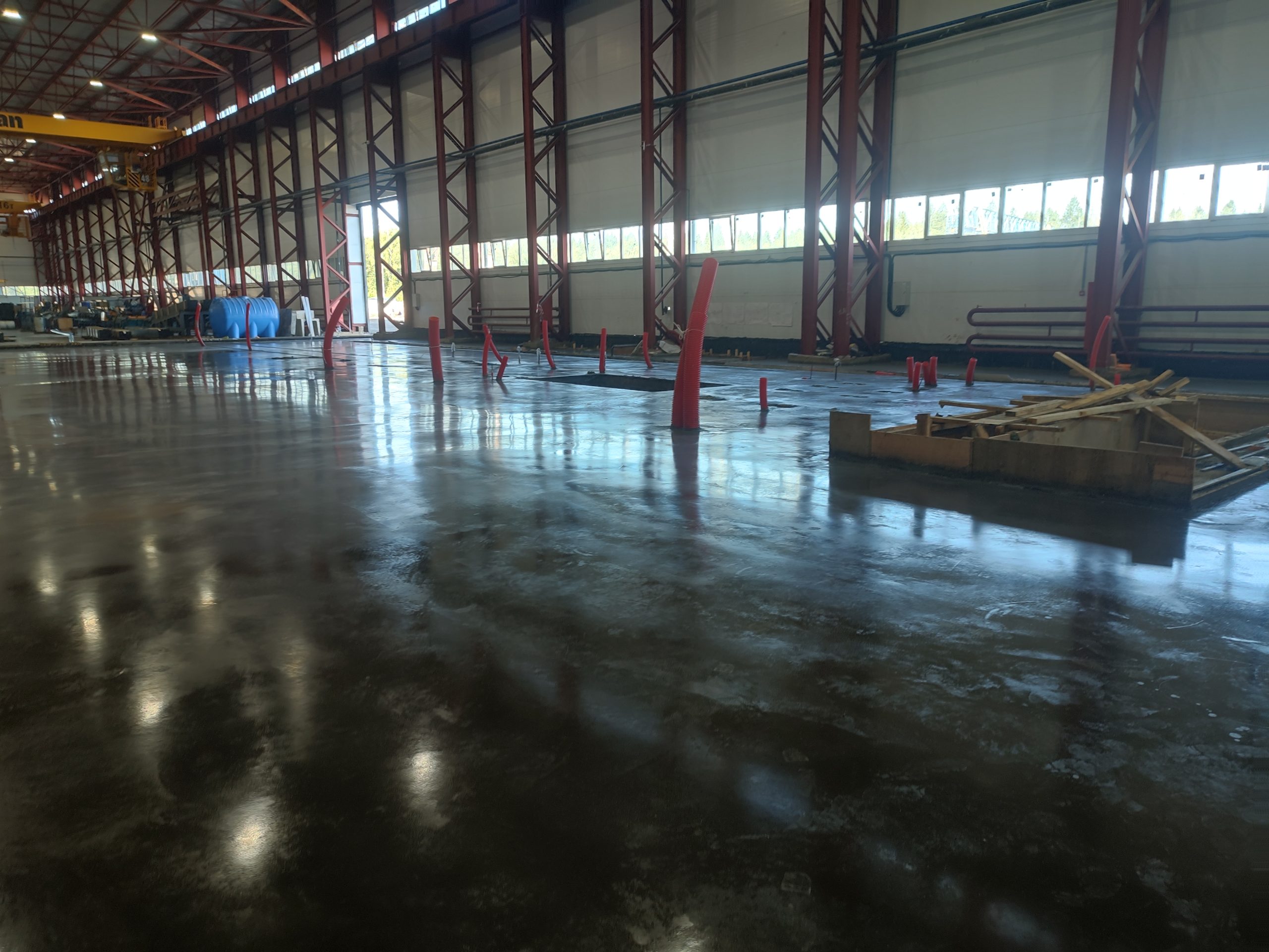 В цеху выполнена наливная стяжка пола. Работа проведена с точным соблюдением уровня и технологии, что обеспечило идеально ровное и прочное покрытие, готовое к интенсивной эксплуатации. Стяжка устойчива к нагрузкам и долговечна, обеспечивая комфортную и безопасную рабочую поверхность.